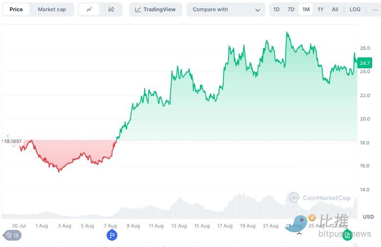 อันที่จริง แนวโน้มราคาในภาค Oracle ได้ส่งสัญญาณนี้แล้ว Chainlink (LINK) ปรับตัวสูงขึ้นอย่างต่อเนื่องตั้งแต่ปลายเดือนกรกฎาคม โดยมีอัตราเติบโตสะสมรายเดือนมากกว่า 40% ซึ่งสูงกว่าสินทรัพย์หลักอย่าง Ethereum อย่างมาก หลังจากการประกาศดังกล่าว Python (PYTH) กลายเป็นจุดสนใจของตลาด โดยพุ่งขึ้นมากกว่า 50% ในวันเดียว และมีมูลค่าตลาดทะลุหลัก 1 พันล้านดอลลาร์สหรัฐเป็นครั้งแรก