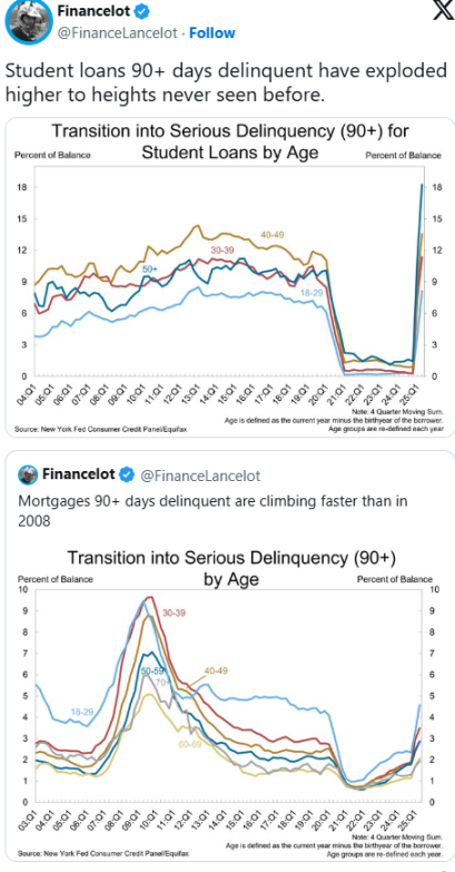 สัญญาณอื่นๆ เช่น การผิดนัดชำระเงินกู้ ยังบ่งชี้ว่าเศรษฐกิจที่แท้จริงกำลังชะลอตัวลงอย่างรวดเร็ว ซึ่งจะส่งผลกระทบต่อเศรษฐกิจการเงินอย่างหลีกเลี่ยงไม่ได้