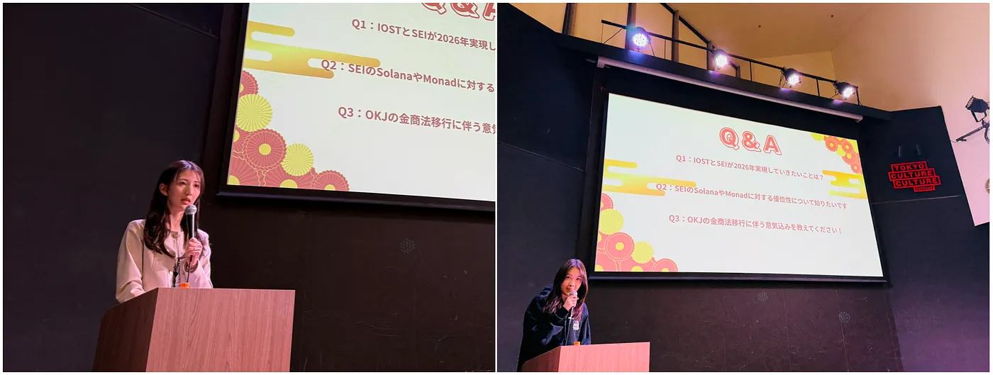 เมื่อวันที่ 28 มกราคม 2569 IOST ร่วมกับ OKCoinJapan ซึ่งเป็นตลาดซื้อขายคริปโตเคอร์เรนซีของญี่ปุ่น และ SEI ซึ่งเป็นโครงการ Layer 1 ได้จัดงานเลี้ยงปีใหม่สุดยิ่งใหญ่สำหรับชุมชนชาวญี่ปุ่นในโตเกียว งานนี้ได้รวบรวมสมาชิกชุมชน ตัวแทนสื่อมวลชน พันธมิตรในอุตสาหกรรม และแขกผู้มีเกียรติมากมาย ทุกคนมารวมตัวกันเพื่อหารือเกี่ยวกับเป้าหมายและวิสัยทัศน์ในการพัฒนาสำหรับปี 2569 และส่งเสริมการแลกเปลี่ยนผ่านช่วงถามตอบแบบโต้ตอบ สร้างบรรยากาศที่สนุกสนานและน่าสนใจ