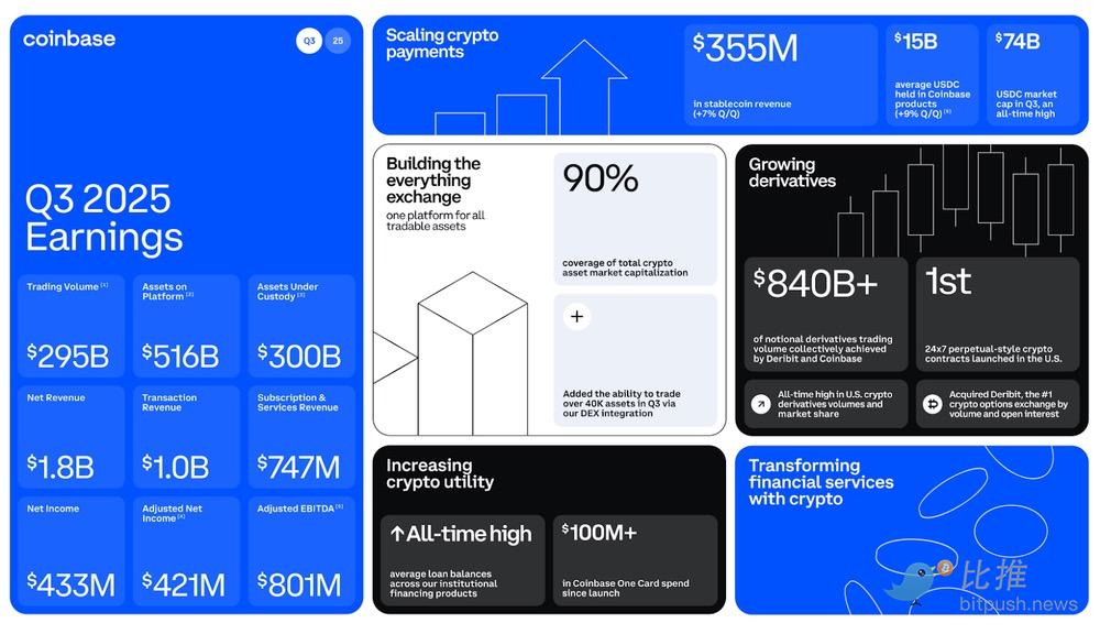 ในส่วนหน้า Coinbase ตั้งเป้าที่จะเป็นแพลตฟอร์มเดียวที่ผู้ใช้สามารถจัดการชีวิตทางการเงินทั้งบนบล็อกเชนและนอกบล็อกเชนได้ แม้ว่าในปัจจุบันจะเน้นไปที่ด้านบล็อกเชนเป็นหลักก็ตาม การอัปเดตระบบในเดือนธันวาคมได้ชี้แจงเรื่องนี้ให้ชัดเจนยิ่งขึ้น: การซื้อขายหุ้นและ ETF แบบไม่เสียค่าคอมมิชชั่นตลอด 24 ชั่วโมง การตลาดการคาดการณ์ผ่าน Kalshi และการผสานรวมบนบล็อกเชนอย่างต่อเนื่องเพื่อให้เข้าถึงโทเค็นนับล้านได้ทันที นอกจากนี้ยังมีบริการฝากเงินโดยตรง การออมที่ให้ผลตอบแทนสูงผ่านอัตราดอกเบี้ยการให้ยืม USDC การให้ยืม BTC สูงถึง 5 ล้านดอลลาร์ (สูงสุด 1 ล้านดอลลาร์สำหรับ ETH) และการรับรางวัลคริปโตเคอร์เรนซีผ่านการใช้จ่ายผ่านบัตรเดบิต องค์ประกอบต่างๆ ของแอปพลิเคชันแบบครบวงจรนี้กำลังค่อยๆ ประกอบกันขึ้น